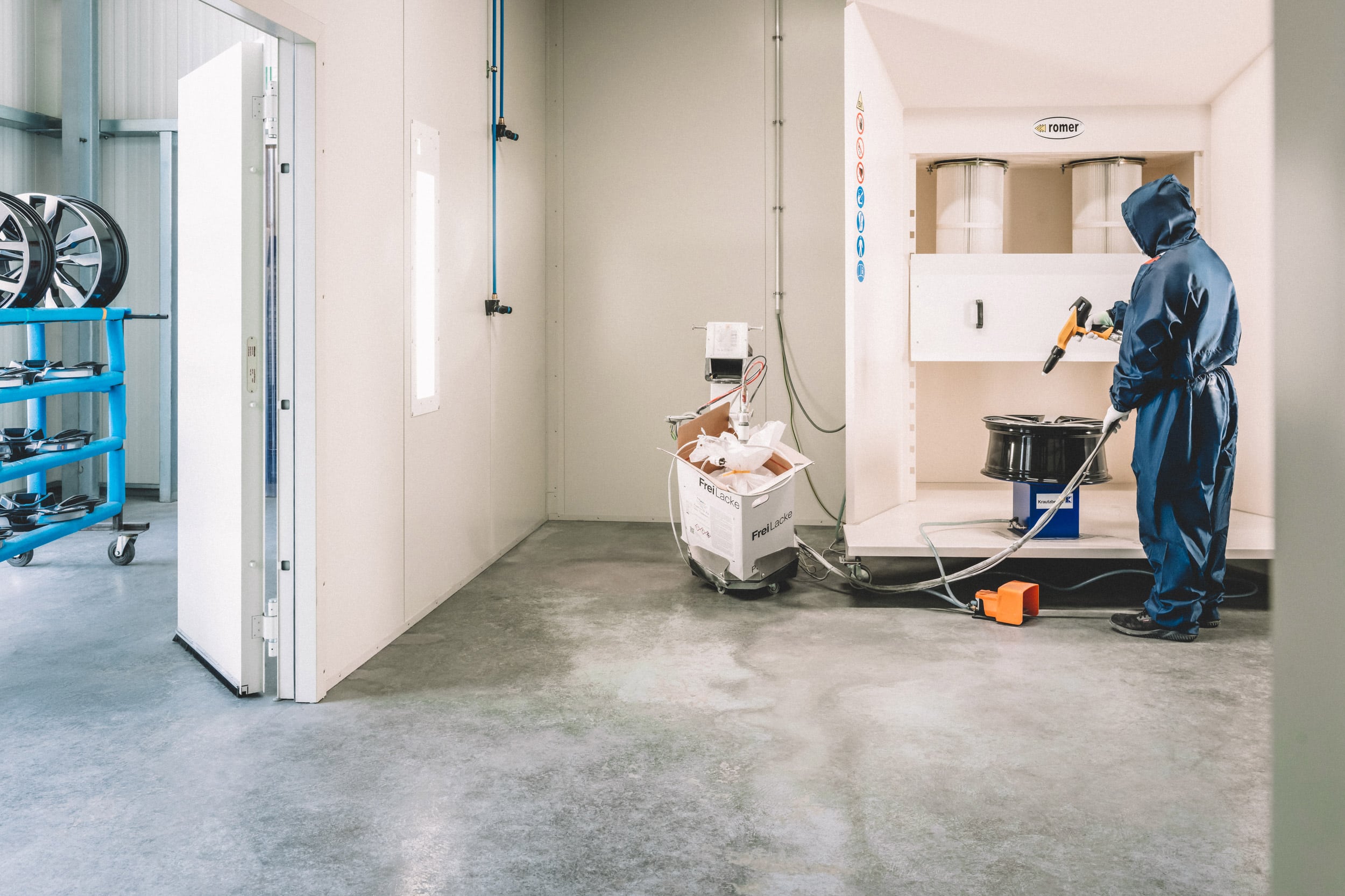 In unserer Produktion verwenden und verarbeiten wir die freigegeben Produkte, Materialien und Lacke der OEM´s und arbeiten nach deren Originalverfahren (wie z.B. chemische Vorbehandlung, Schleifen, Pulverbeschichtung, Lackieren).